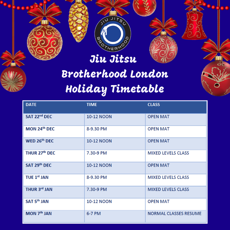 All classes over the Christmas holiday period will be held at St. John’s Parish Hall